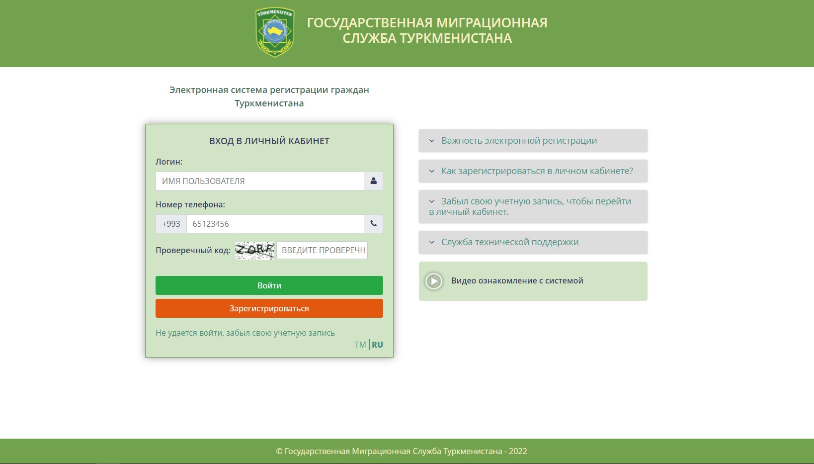 The first thing to do after going to the “Online Services” section is to click on the “Get temporary electronic permission” link, after which you will be prompted to create a “Personal Account”. In your personal account, you must fill in all the fields, namely login, phone number and create a verification code (for instance, PERHAT/65712105/FZWA).