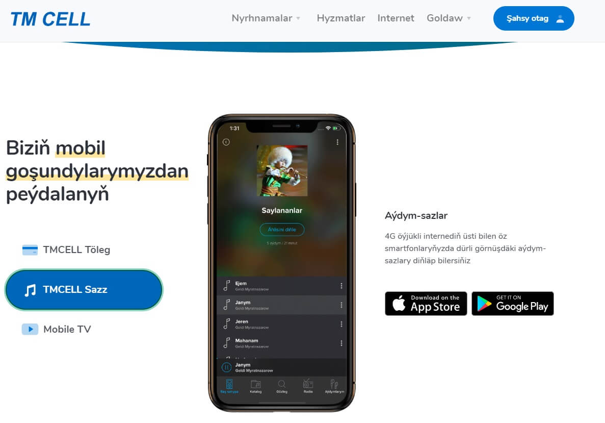 12. Do you like to listen to songs or music? You can use the mobile software "Tmcell sazz". The program can be downloaded from "PlayMarket" or "AppStore". There is a very large song and music library.