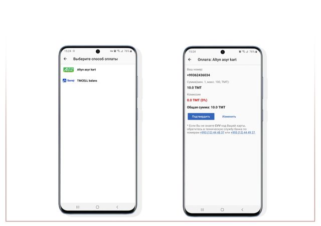The first week you can use the application for free, then the subscription fee is 10 manat per month. You can pay directly from your phone. In order to do this, you need to log into your account, where your balance will be displayed, and click “Refill”. You will be prompted to pay from “Altyn Asyr” card or from a TM Cell account.
