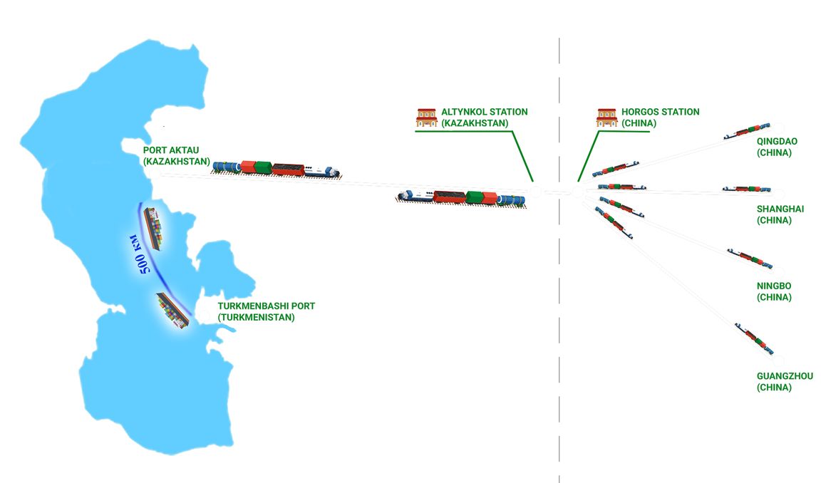 К настоящему времени проводится пилотный проект доставки груза японского производства в собственных контейнерах "Bir Kuwwat» из японского порта Нагоя через порт Ляньюньган, Китай далее в Туркменистан.