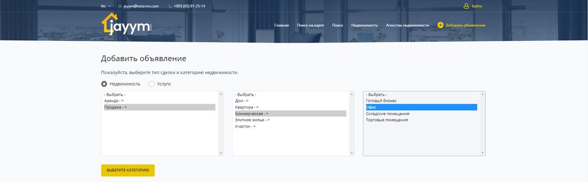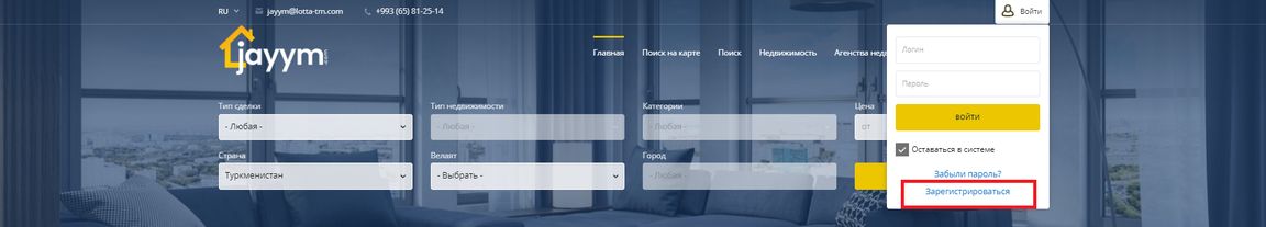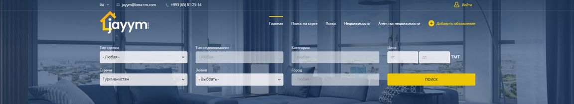 Jayym.com – это новый и удобный сервис поиска недвижимости, который поможет купить, продать, снять и сдать в аренду недвижимость по всему Туркменистану, не выходя из дома. В отличие от устаревших сайтов и приложений, Jayym.com отвечает всем требованиям нашего времени, обладает модернизированной системой поиска и размещения объявлений. Множество параметров сортировки помогут подобрать недвижимость на любой вкус и бюджет. А что для этого надо мы сейчас подробно расскажем.