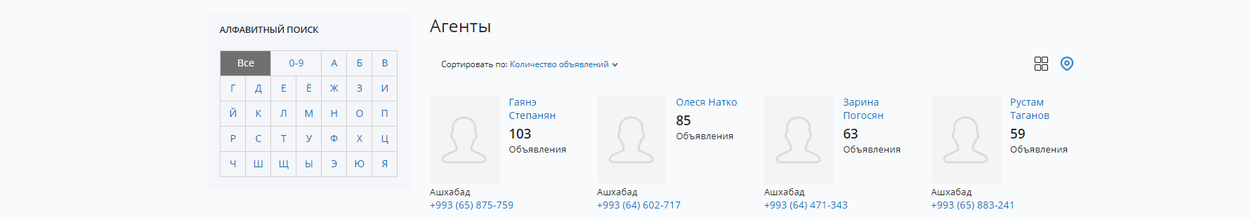 C главной страницы можно зайти в раздел «Агенты». Их на сайте несколько сотен и у каждого - большой список предложений. Выбрав понравившуюся недвижимость самостоятельно, можно отправить её в личный кабинет с помощью добавления в «Избранное». На странице понравившейся недвижимости также можно связавшись с конкретным агентом, написать ему сообщение и задать интересующие вопросы.