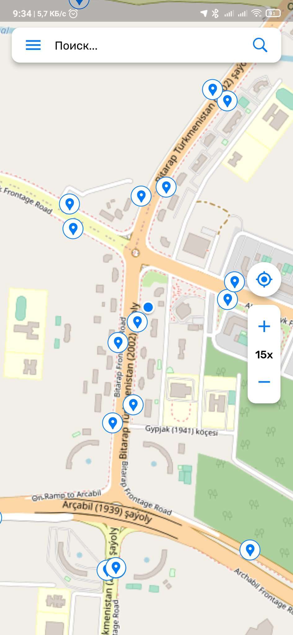 Для работы приложения необходимо подключение к интернету и GPS. При запуске программы, благодаря системе навигации, сразу же можно увидеть собственное расположение на карте Ашхабада. Также на карте обозначены все существующие к настоящему моменту остановки столичного транспорта.