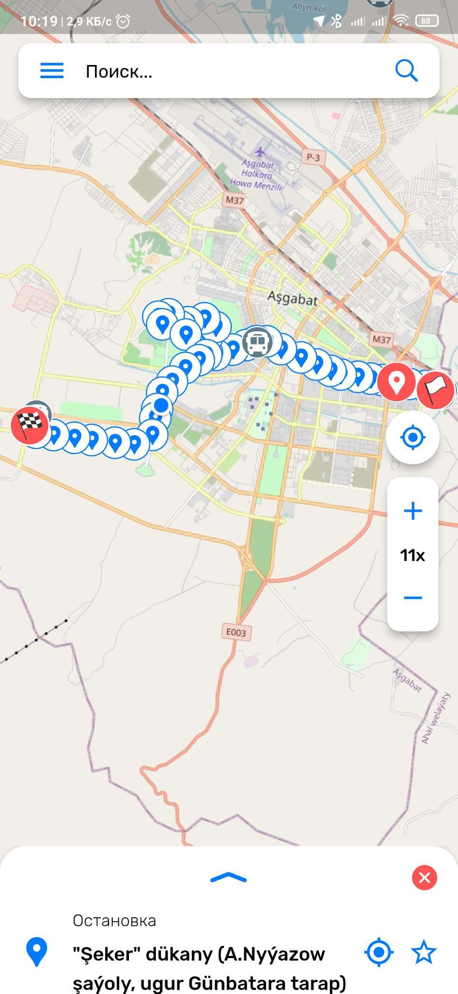 База данных с новыми маршрутами автобусов и остановок, регулярно пополняется и обновляется. Приложение доступно на туркменском, русском и английском языках.