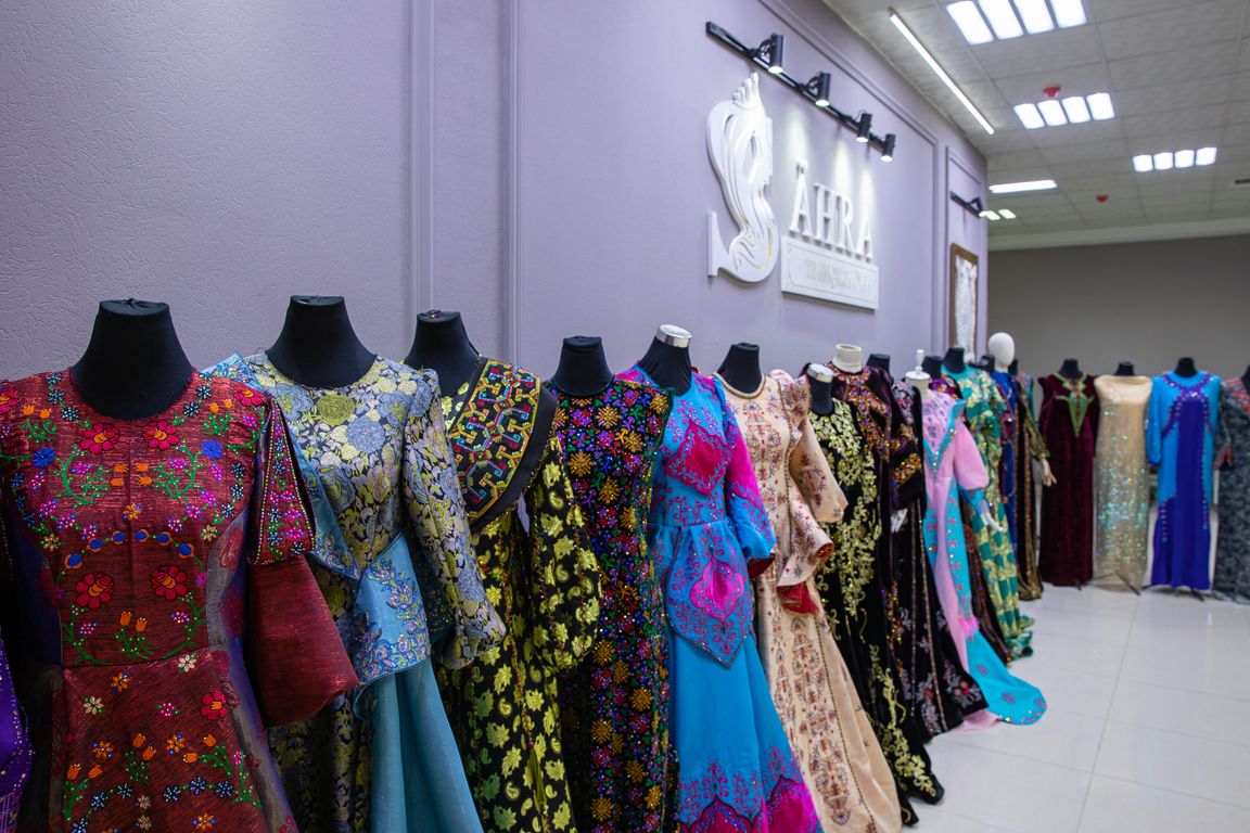 Магазин-ателье Sähra расположено по адресу: Ашхабад, ул. Гурбанназара Эзизова (бывшая Совхозная), 11, здание Çaga.