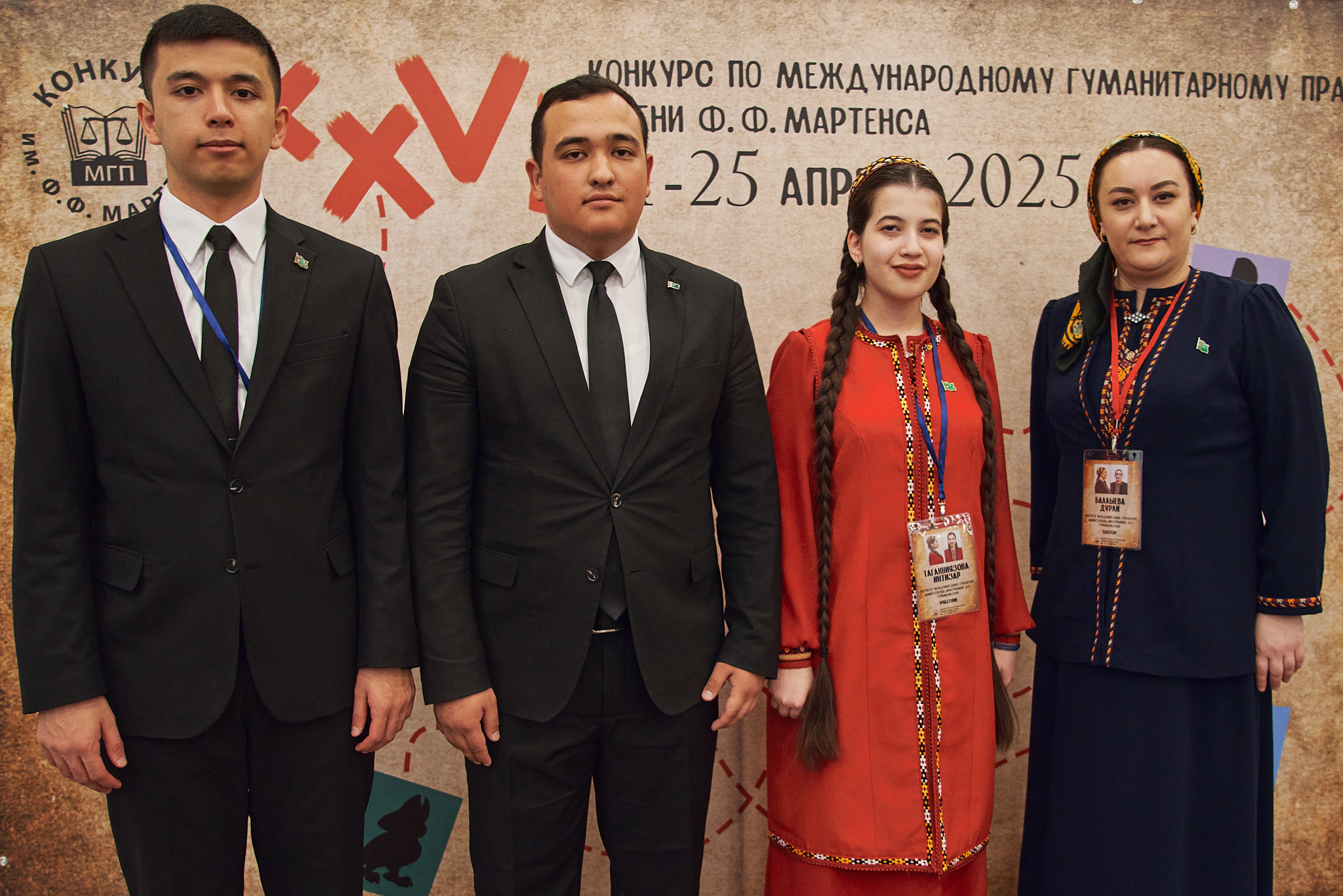 С 21 по 25 апреля 2025 года команда студентов Института международных отношений Министерства иностранных дел Туркменистана достойно представила нашу страну на ежегодном Конкурсе по международному гуманитарному праву имени Ф.Ф.Мартенса, который проходил в Московской области Российской Федерации.