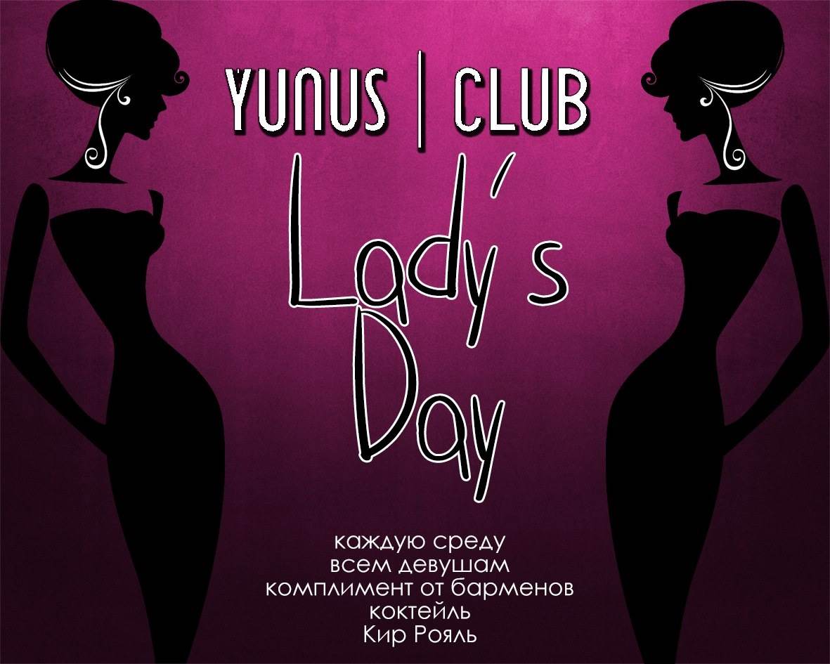 Каждую среду в YUNUS CLUB проходит "LADY'S DAY". Всех девушек в этот вечер ждет подарок от бармена. Добро пожаловать!!!