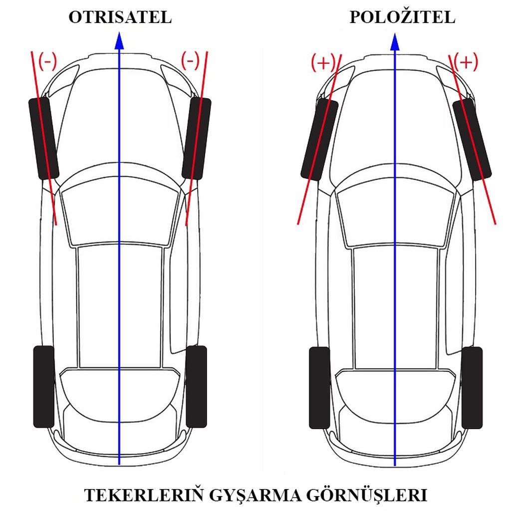 “Awtoýoly” nyşanyny göterýän dükanlaryň hünärmenleri tekerleriň dürslügini ýörite gurallar bilen enjamlaşdyrylan awtoulag hyzmatlarynda sazlamagy maslahat berýär. Bu sazlamanyň esasy gurluşy aşakdakylardan ybarat: