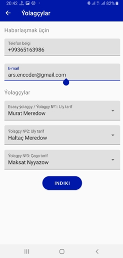 Soňra “Ýolagçylar” penjiresi açylar. Bu penjirede habarlaşmak üçin telefon belgi we elektron poçta, şeýle hem ýolagçylar barada maglumat (ady, familiýasy, doglan senesi, jynsy, pasport belgisi we ş.m.) soralýar. Maglumatlary ýazyp, “Indiki” düwmesine basmaly